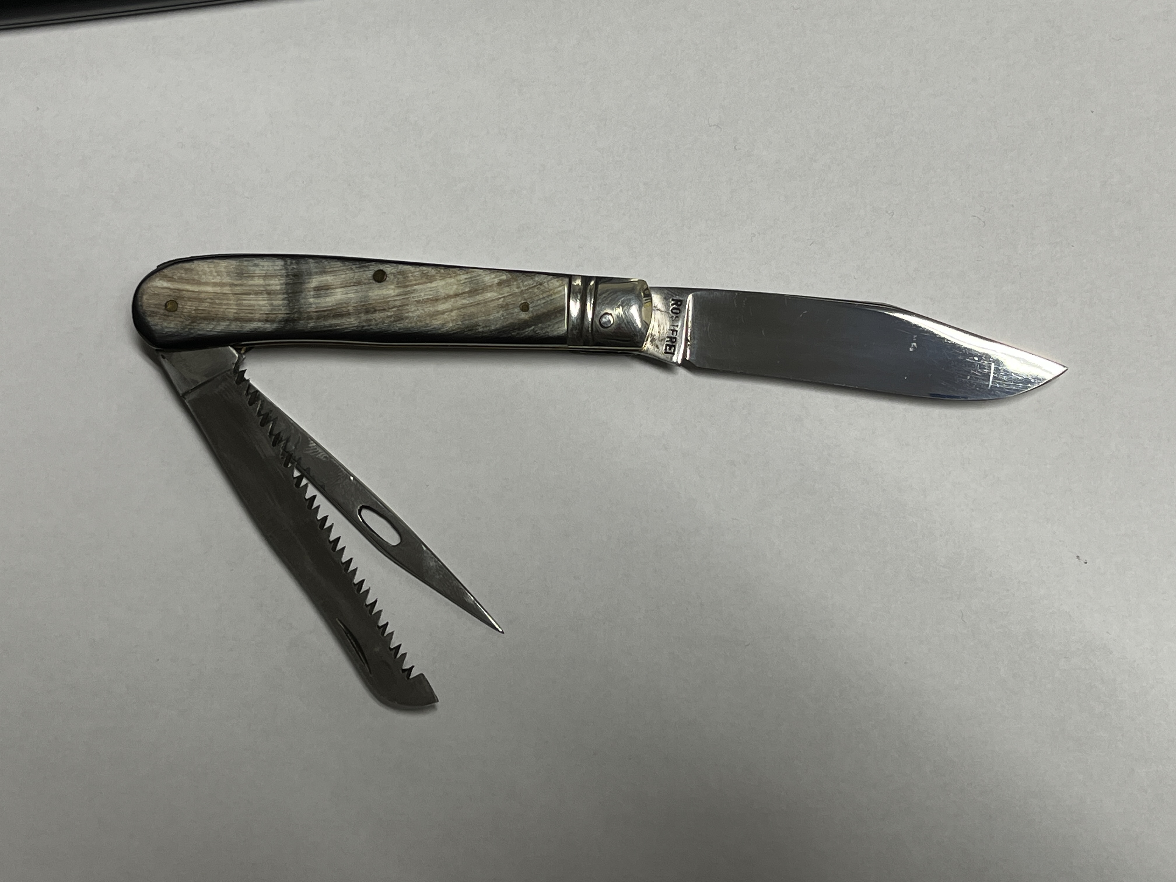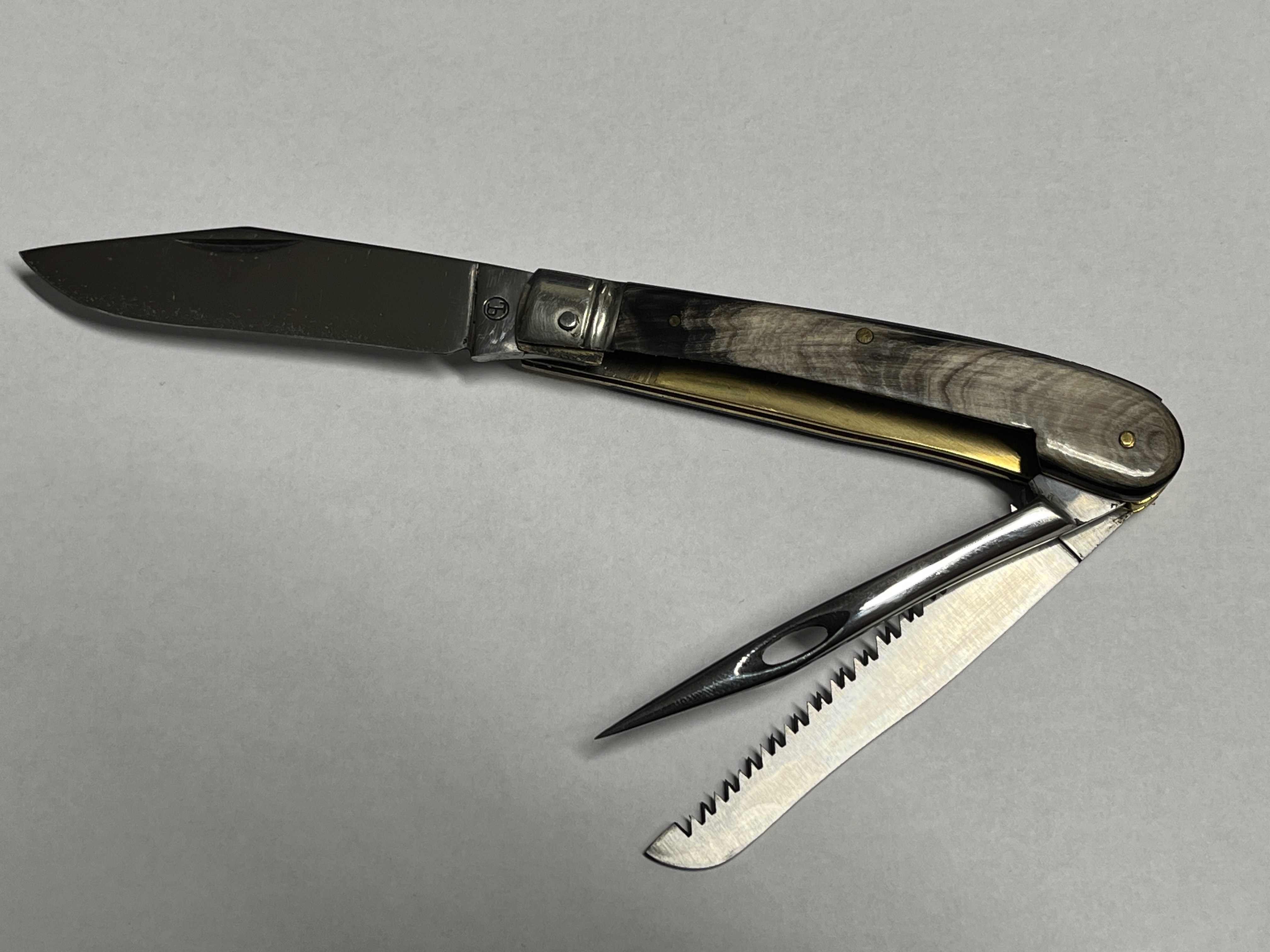Klinge,Säge,Pfriem,Hornbeschalung,Neusilberbacken.