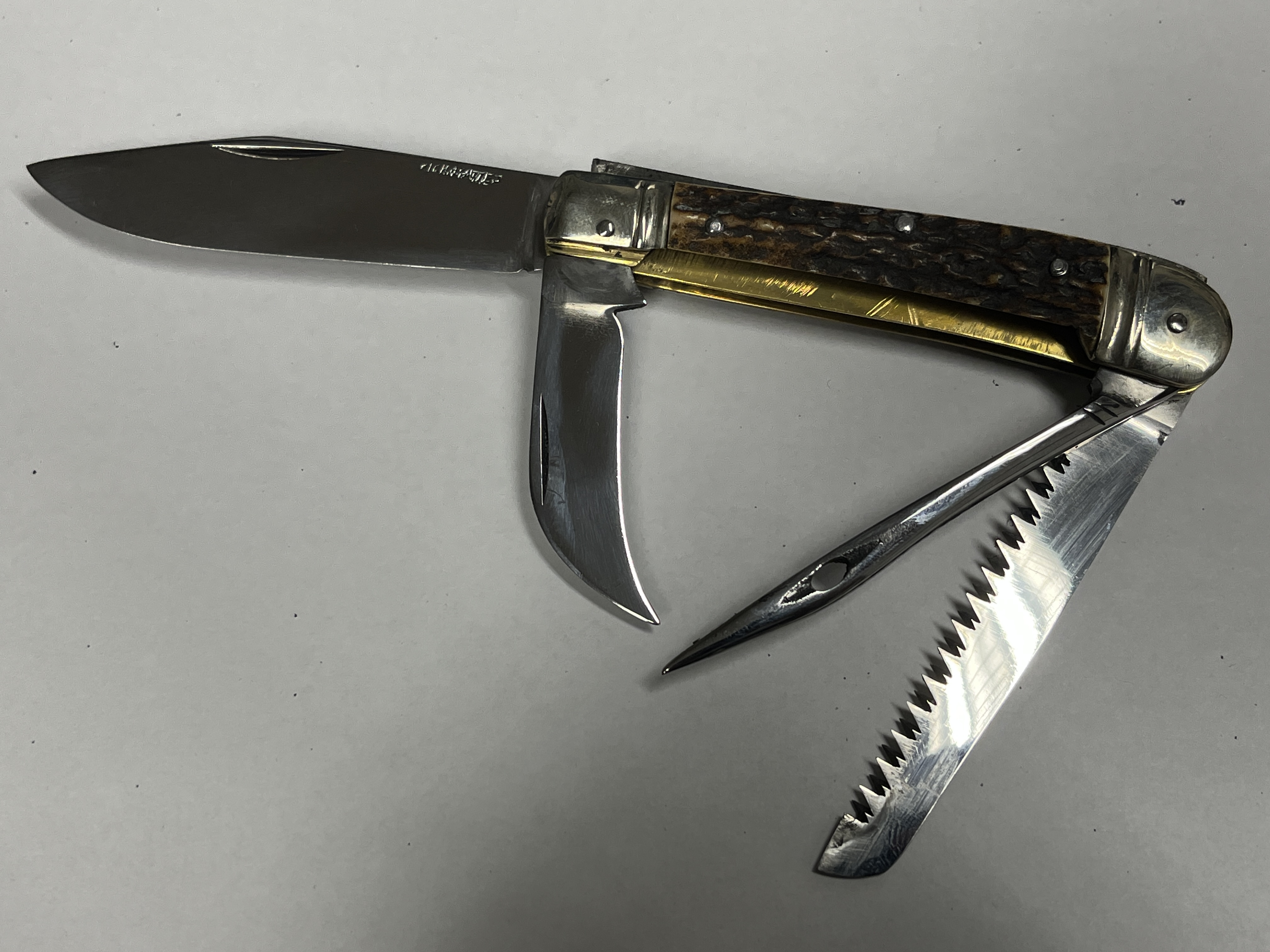 Große Klinge,Säge,Häble und Pfriem mit Hirschhornbeschalung.