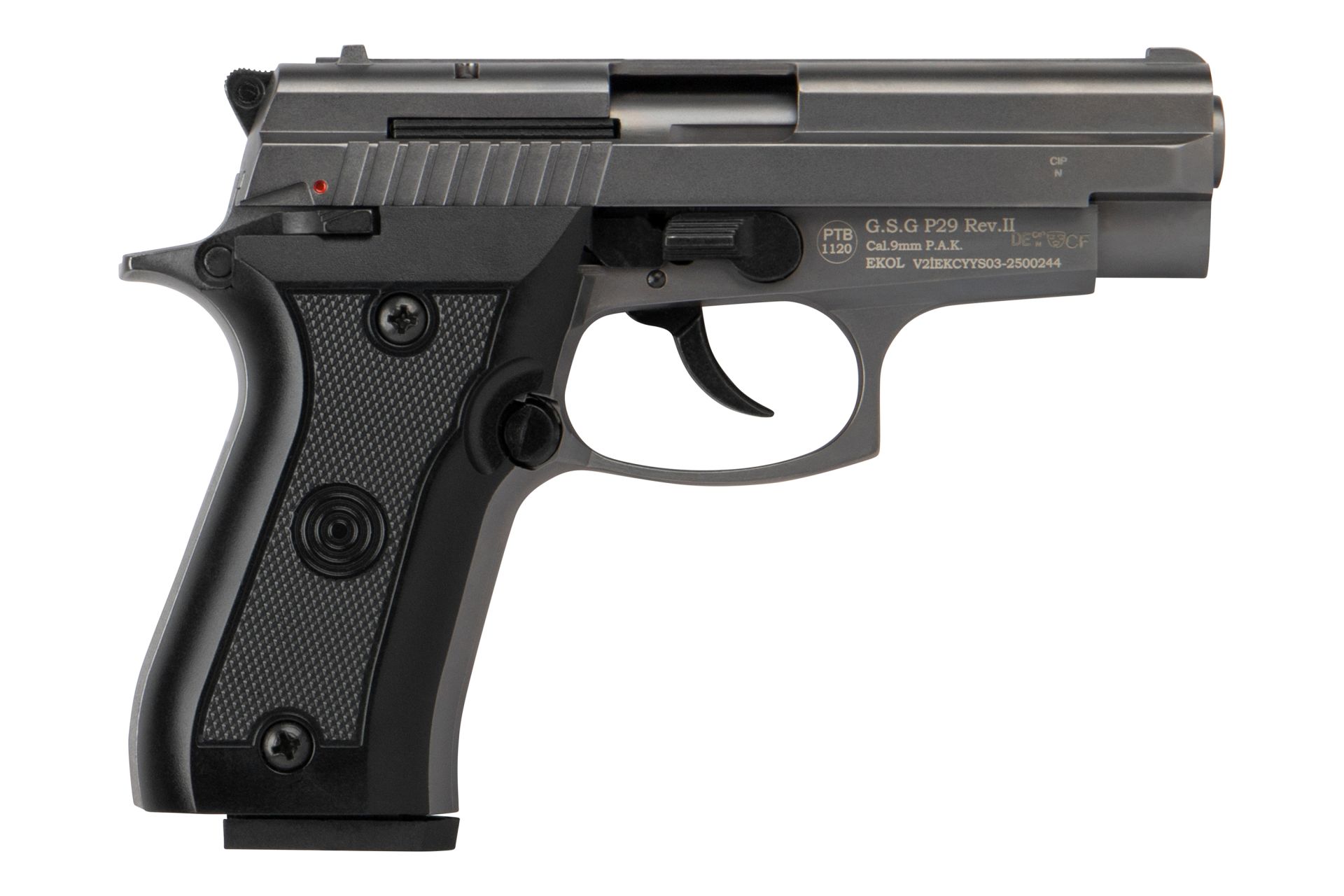 Ausgestattet mit einem Double-Action-Abzugssystem und einer manuellen Sicherung, bietet die P29 Schreckschuss-Pistole eine einfache Bedienung und ein hohes Maß an Sicherheit. Die zuverlässige Mechanik sorgt für eine störungsfreie Funktion, auch bei schneller Schussabgabe.