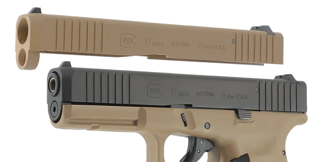 In den Abmessungen hält sich die GLOCK 17 Gen5 SV im Kaliber 9 mm P.A.K. so exakt an ihr Vorbild, dass sie ein Tragen in allen gängigen Holstern zulässt.