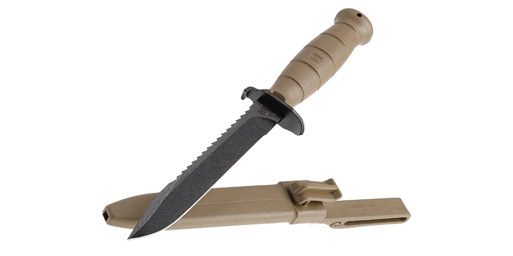 Zur weiteren umfangreichen Ausstattung des Sets gehören das bewährte GLOCK-Feldmesser in FDE in der FM 81-Ausführung mit Sägezahnung auf dem Klingenrücken und Polymerscheide, sowie ein originales GLOCK-Patch.