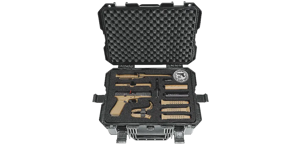 Limitiertes Exklusiv-Set im wasserdichten und stoßsicheren Profi-Koffer, mit 2 Stahlschlitten und zwei Schalldämpfern