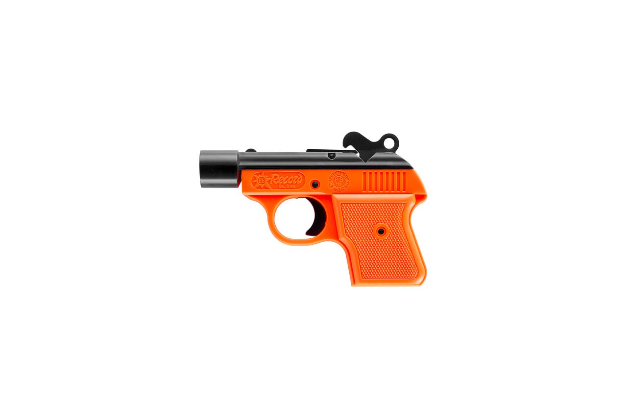 1-Schüssige Startpistole im Kaliber 6mm Flobert. Der Abschussbecher für ein Schuss Pyrotechnik ist bereits fest montiert.
