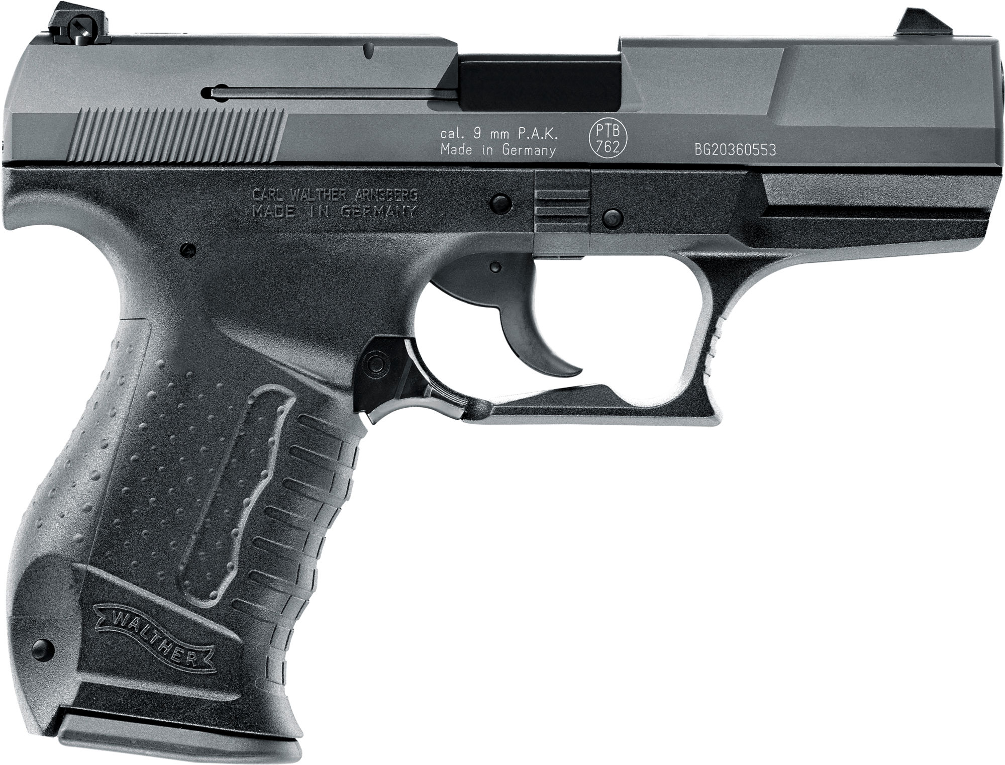 Walther P99, brüniert Stahlschlitten, 9mm P.A.K.