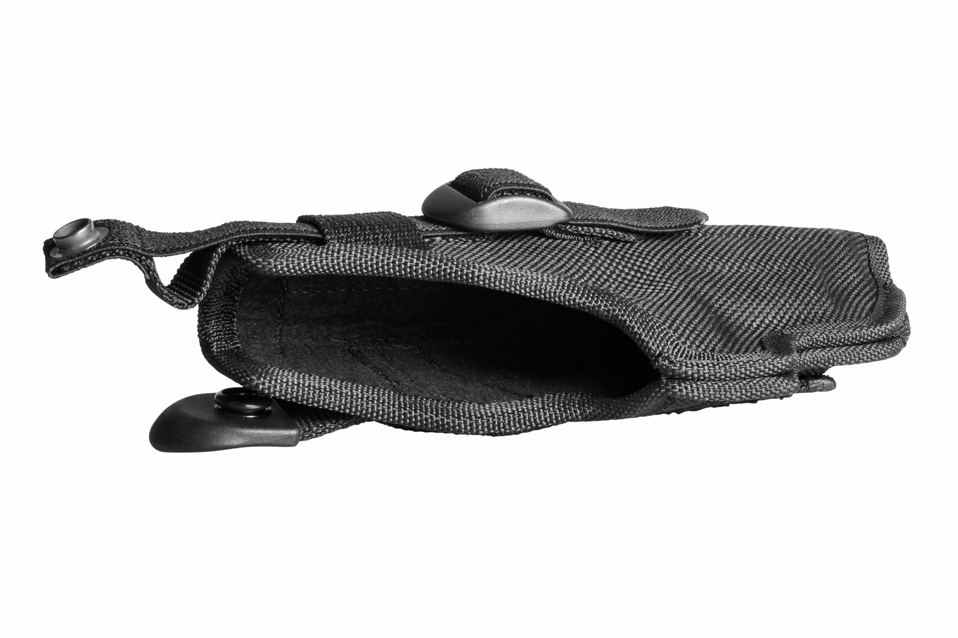 Das Holster besteht aus pflegeleichtem, verstärkten Cordura und wird per Druckknopf gesichert.