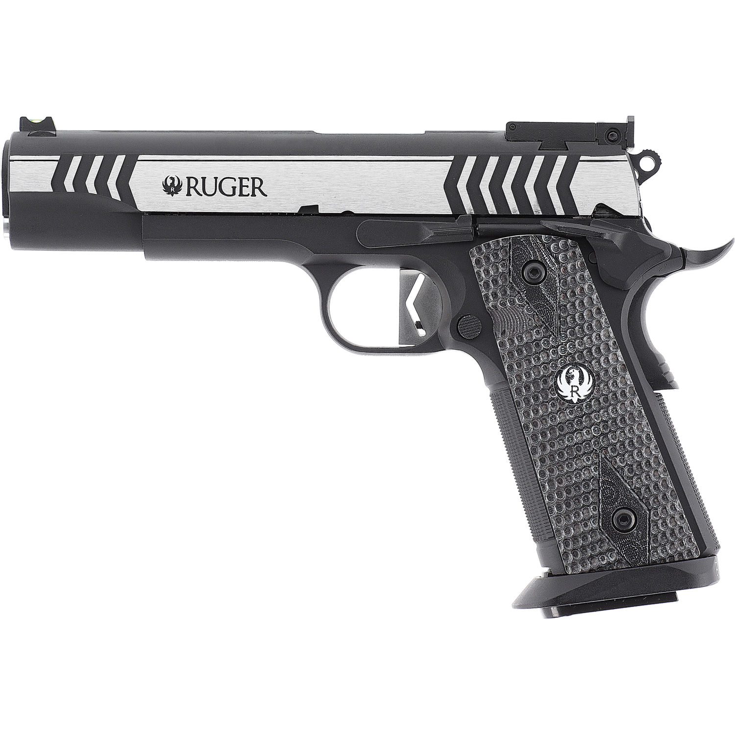 Zur schnellen und präzisen Zielerfassung bietet die Visierung ein Fiberkorn und eine voll einstellbare Kimme. Die Ruger SR1911 Competition stellt so eindrücklich unter Beweis, dass auch eine so klassische Pistole wie die 1911 auch heute noch üppiges Potential für ausgiebigen Schießspaß bietet.